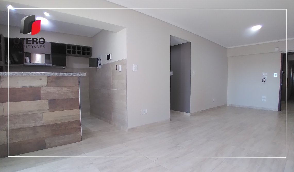 MODERNA COCINA, LIVING COMEDOR INTEGRADO CON PISOS EN PORCELANATO